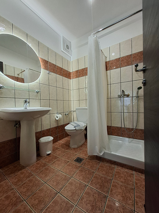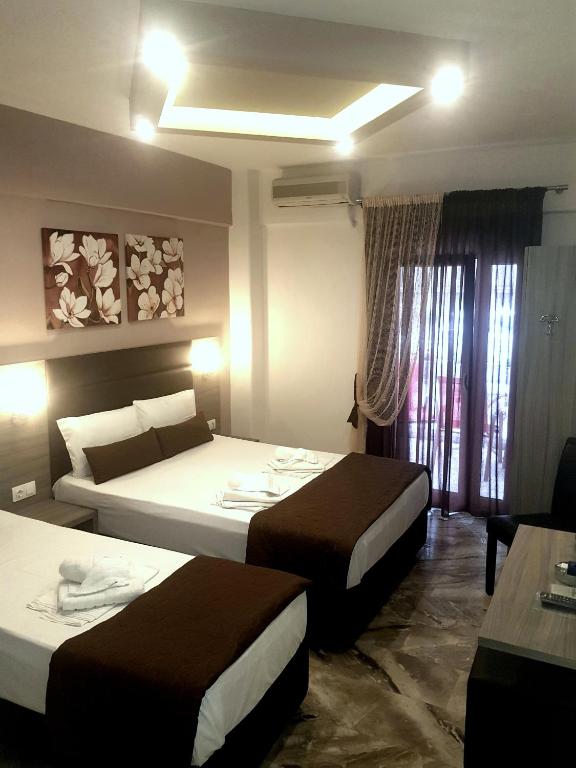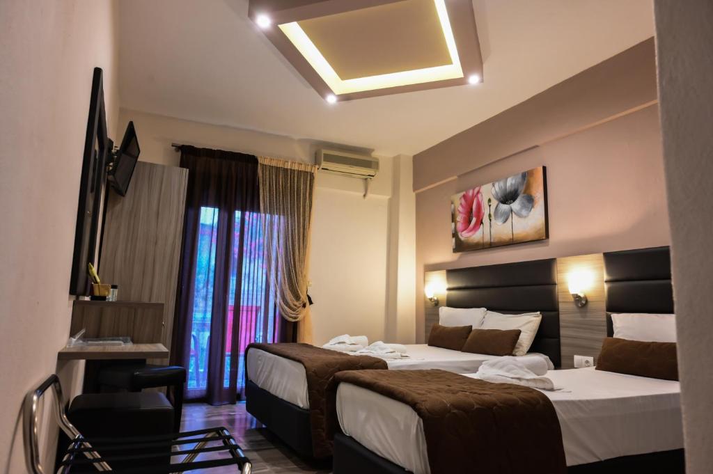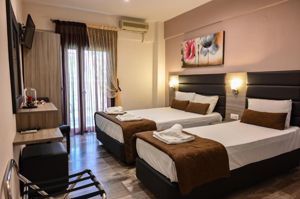 Τα τρίκλινα δωμάτια είναι 30 τετραγωνικά και έχουν ένα διπλό και ένα μόνο κρεβάτι με πολύ αναπαυτικό στρώμα, δωρεάν wifi, θυρίδα ασφαλείας, κλιματισμό, δορυφορική επίπεδη τηλεόραση, ιδιωτικό μπαλκόνι με τραπέζι και καρέκλες, προϊόντα περιποίησης, σεσουάρ, κουζινάκι πλήρως εξοπλισμένο με διπλή εστία μαγειρέματος, βραστήρα, φρυγανιέρα και όλα τα απαραίτητα σκεύη για να κάνουν την διαμονή σας πιο άνετη. Υπάρχει δυνατότητα τοποθετήσεις παιδικού κρεβατιού (παρκοκρέβατο).
